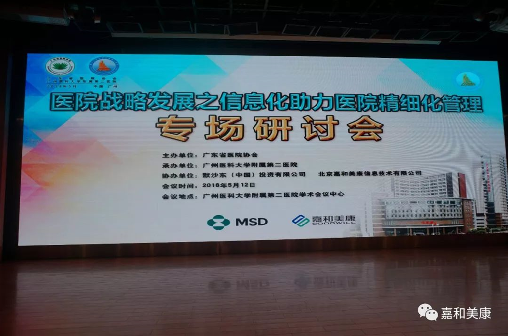 2018年5月12日,由广东省医院协会主办,广州医科大学附属第二医院(以下简称广医二院)承办,北京嘉和美康信息技术有限公司(以下简称为嘉和美康)、默沙东(中国)投资有限公司联合协办的“医院战略发展之信息化助力医院精细化管理专场研讨会”在广州医科大学附属第二医院学术会议中心圆满举行。