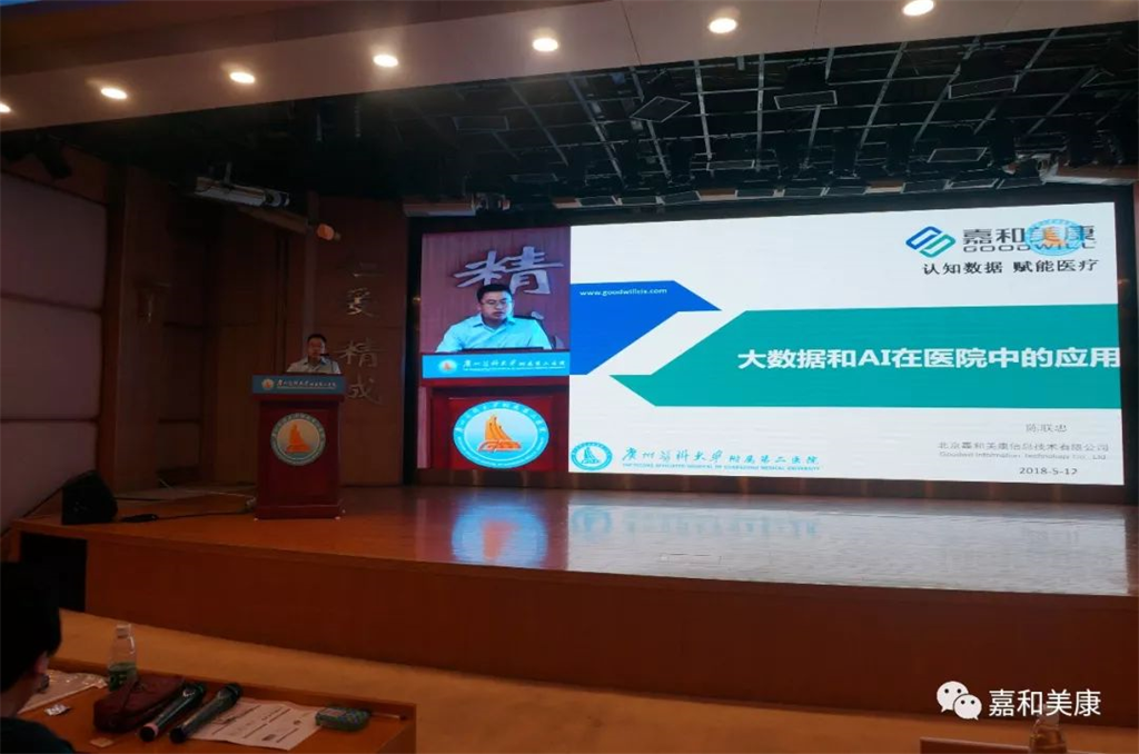 下午,进行了分组系统演示及分组讨论(医务组、护理组、信息组),讨论在三个分会场同步举行。其中,信息组的讨论会,在广医二院信息中心主任陆慧菁的精彩主持中,拉开帷幕,嘉和美康技术总监陈联忠做了《大数据和AI在医院中的应用》的演讲,一度将会议气氛推向高潮。