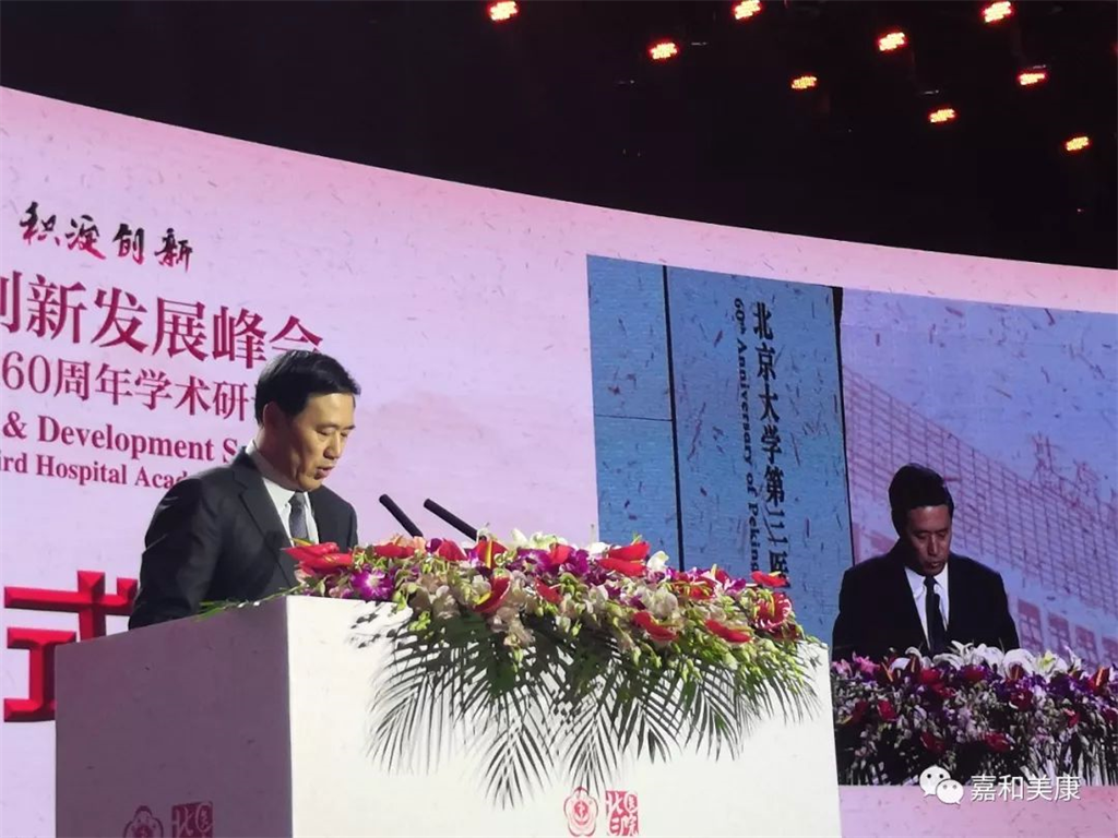 北医三院院长乔杰在致辞中表示:此次创新峰会,不仅是和大家一起见证北医三院一个甲子的风雨历程,而且是大家一起交流医院管理经验心得和探索新时代大型医院的发展良策的好机会。
