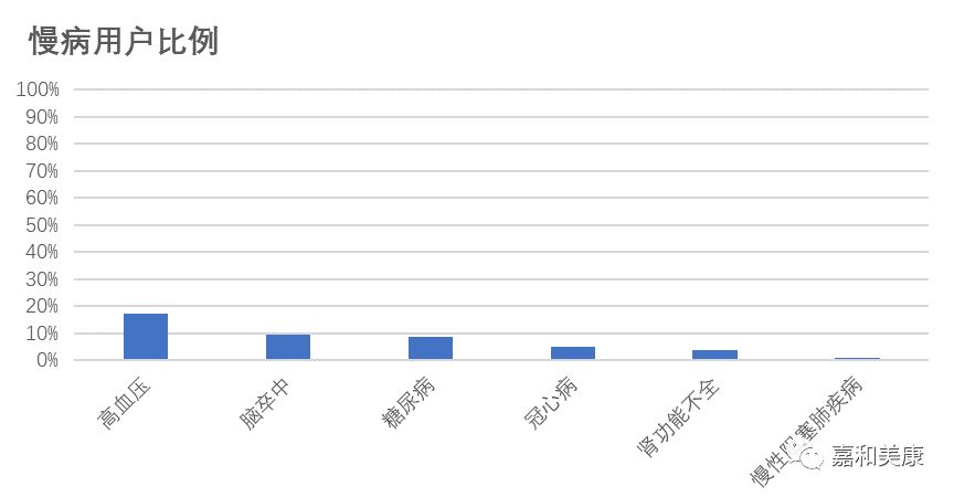 目前云病历中慢病用户占比例较高,其中高血压患者高达17.5%,针对部分慢病(如高血压、糖尿病等),已有相应的服务支持。同时云病历APP已经对接部分智能设备,方便用户记录自己的血压、血糖测量结果。从数据来看,患者主动上传管理自已的测量结果比例较高。